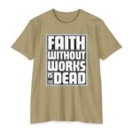 The Faith Without Works Is Dead Tee emphasizes the vital connection between belief and action, inspired by James 2:17. This Christian tee reminds believers that true faith is active, practical, and visible in daily life. Its bold design makes it perfect for church, ministry, casual wear, or faith-inspired events.