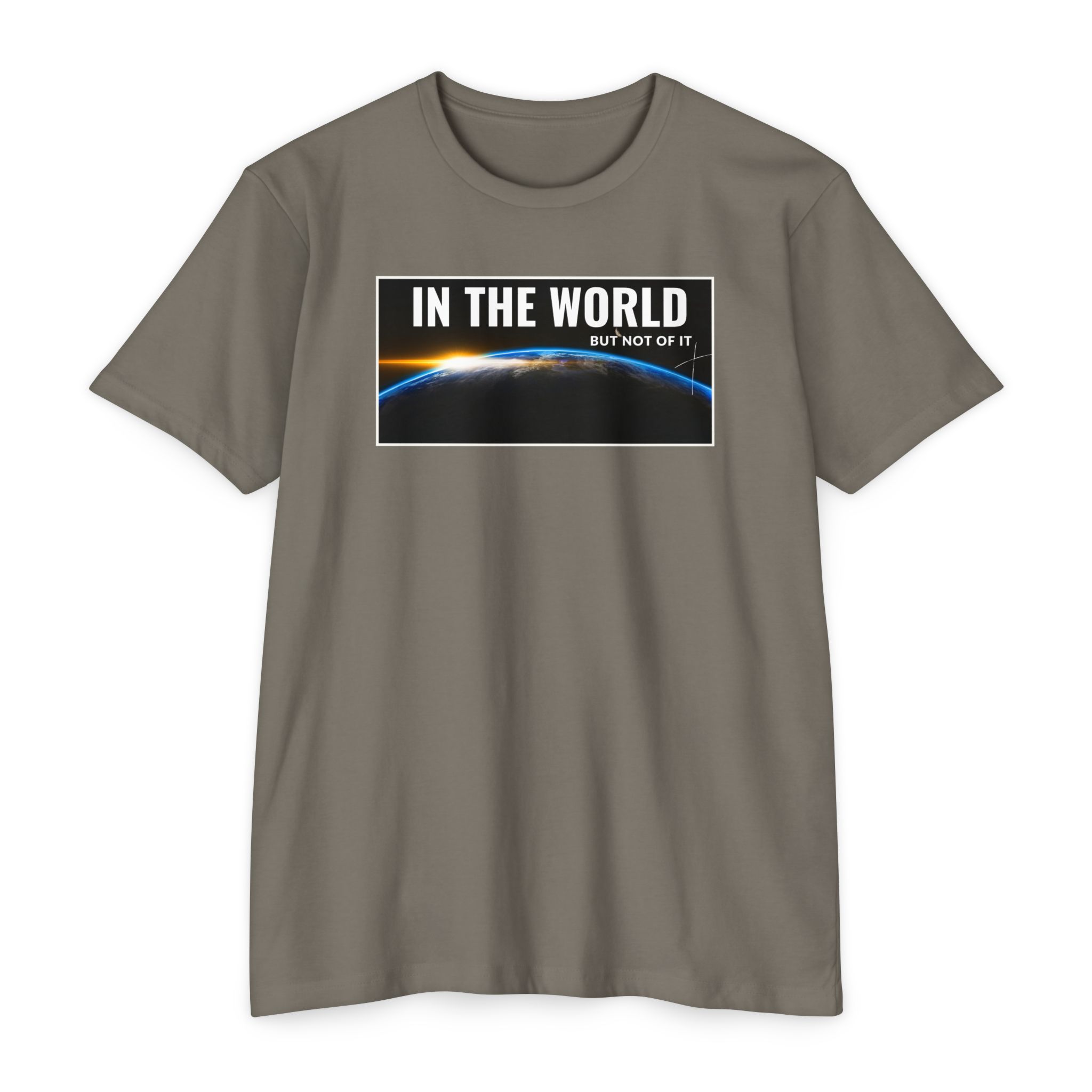 The In the World but Not of It Tee delivers a powerful biblical message through a striking space view of Earth. This Christian tee reminds believers that while we live in the world, our identity and hope come from Christ alone. Therefore, it encourages a faith-filled mindset rooted in Scripture and eternal truth. Designed for everyday wear, this tee blends bold faith expression with modern Christian apparel style.