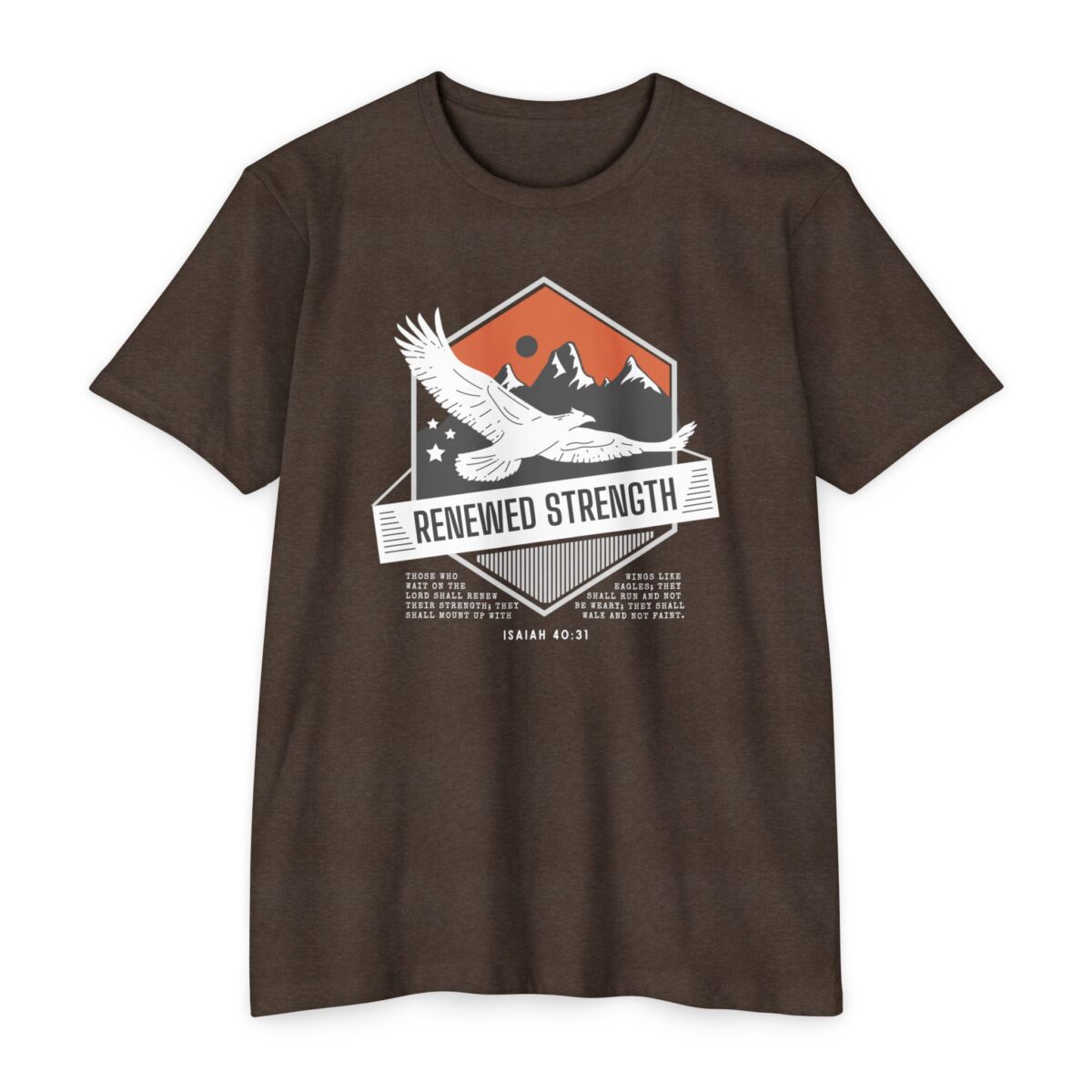 Bold “Renewed Strength” design with eagle wings