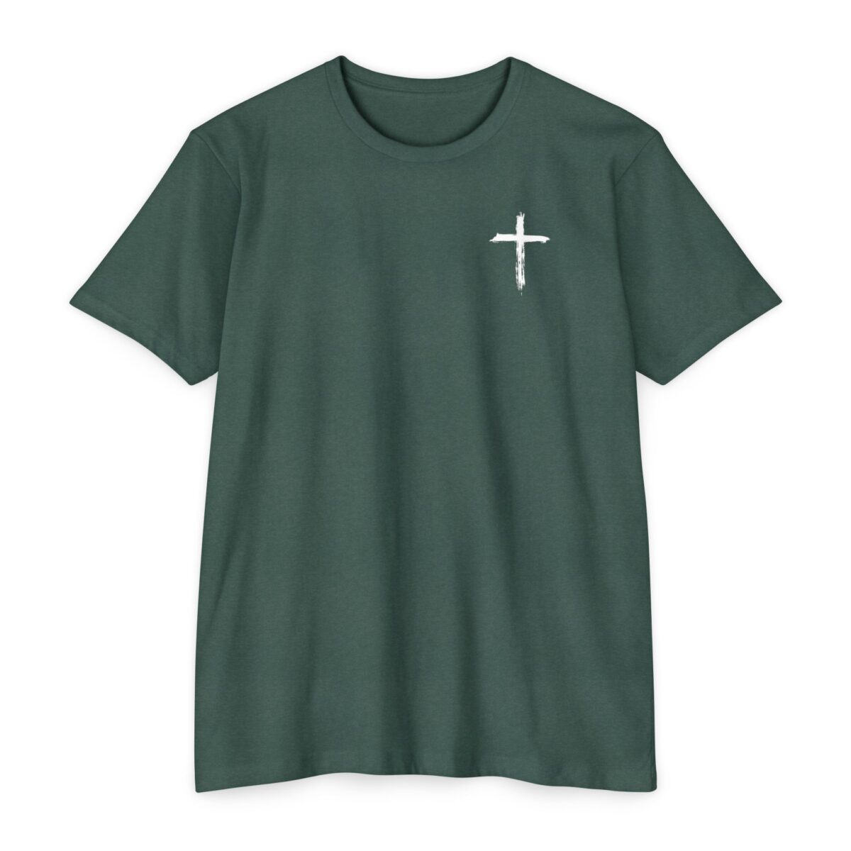 The Simple Cross Tee features a minimalist, brush-stroked cross design aligned on the left chest, symbolizing faith, devotion, and the centrality of Christ in life. This Christian tee is perfect for believers who prefer subtle yet powerful expressions of faith through everyday apparel.
