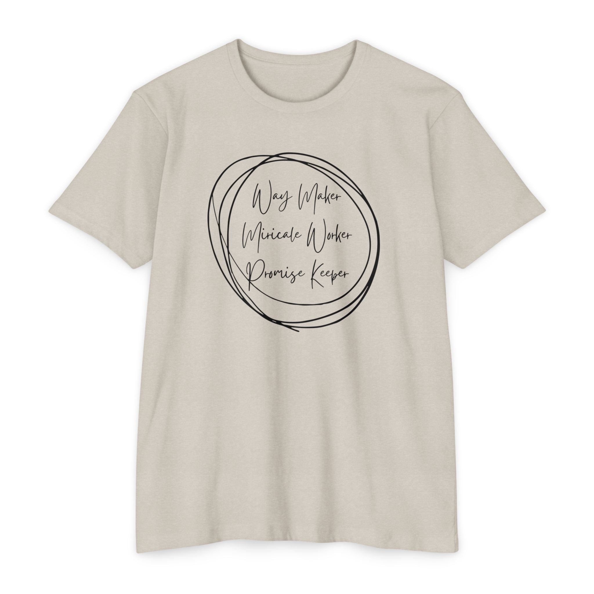 The Way Maker Tee boldly proclaims who Jesus is, inspired by the powerful declaration: Way Maker, Miracle Worker, Promise Keeper. This Christian tee reminds believers that God is always at work, even when the path is unclear. Designed for everyday wear, church, worship nights, or ministry events, it blends faith, encouragement, and modern Christian apparel style.
